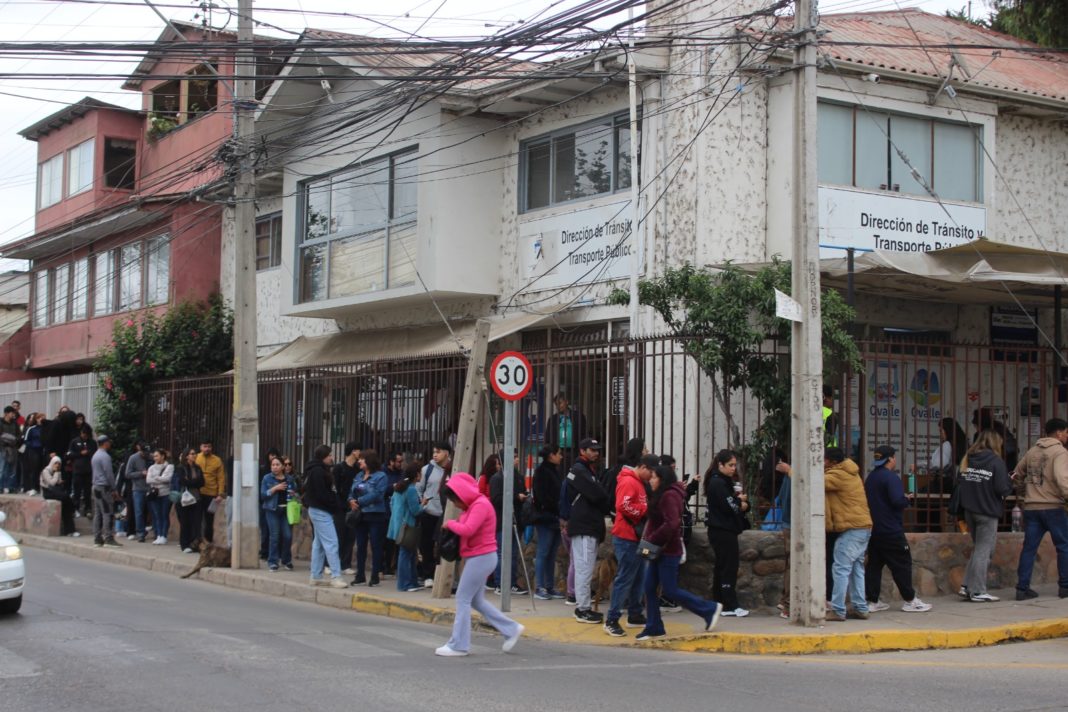 Una extensa fila de más de dos cuadras se registró este martes en las afueras del Departamento de Tránsito de la municipalidad de Ovalle, donde decenas de usuarios madrugaron e incluso pasaron la noche para obtener un número y así iniciar el proceso de renovación u obtención de licencia de conducir.