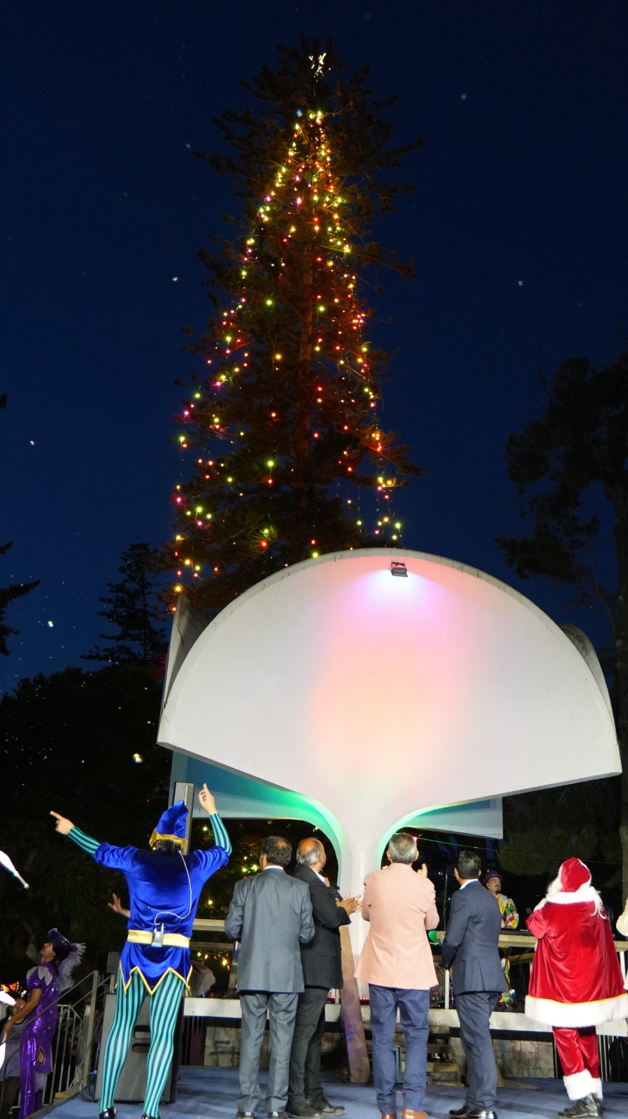 Finalmente, a las 21:15 horas, se realizó el tradicional encendido del árbol natural, un hito que fue celebrado con aplausos y vítores por la multitud.